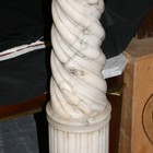An alabaster jardinière stand, the circular top raised on a wrythen tapering and baluster stem, on an octagonal base, height approx 108cm.
