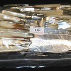 A set of twelve Edwardian plated fish knives and forks with mother-of-pearl handles, and a set of six plated fruit knives and forks with mother-of-pearl handles by Mappin & Webb.