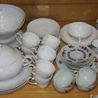 A Rosenthal Studio-Linie white glazed part service, relief decorated with concentric bands of ovals, comprising three plates, two bowls of graduated size, a tureen and cover, saucer dish, three tea plates, four side plates, eight teacups and seven saucers and a soup bowl and stand (minor faults and repairs), together with eight Ginori coffee cans and four saucers and a Chinese style Limoges part service (minor faults).