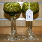A set of six lime green and clear hock glasses, 20th Century, each on a faceted stem and circular foot.