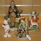 A Capodimonte porcelain figure modelled as an elderly gentleman seated on a bench reading, together with three similar figures, comprising a Cupid, a boy with a goat and a girl with a lamb (repaired).
