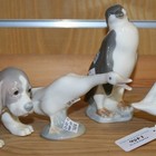 A Lladro porcelain model of a penguin, together with three other Lladro pieces, comprising two geese and a puppy.