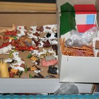 A collection of Britains farm implements and accessories, including a No. 952 Ford 5000 tractor and a No. 9566 high sided tipper cart, within window boxes, a No. 9542 forage harvester, a Ford 6600 tractor and Shawnee Poole rear dumper, a horse and cart, a collection of farm animals, figures and accessories, a Timpo farm set and other plastic farm animals, figures and buildings (playwear and faults, boxes creased, torn and scuffed), and a small collection of zoo animals.