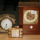 An early 20th Century plated mantel timepiece with eight day movement, the enamel dial inscribed 'WM Hamilton & Son, Edinburgh', the plated case with lion mask and ring handles on bun feet (faults), together with a French brass eight day movement in a later case and a Smiths gilt metal cased alarm bedside clock.