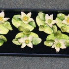 Fifteen Crown Staffordshire menu holders or place card settings, each modelled as a white flower on a green glazed base applied with leaves (minor faults).