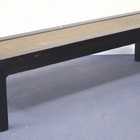 A Chinese stained softwood long bench, the panelled top inset with a rattan weave, on block legs, width approx 208cm.