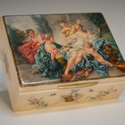 A 20th Century ivory rectangular box, the hinged lid finely painted with a scene of a classical semi-clad maiden with Cupid and three female attendants, length approx 10.8cm.