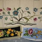 A mid-20th Century embroidered crewelwork style floral panel on a canvas ground, together with a large collection of mostly 20th Century embroidered and woven panels and fabric sections.