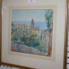 E. Guy Dawker - 'Amalfi' (View of the Italian Coastal Town), watercolour, signed with initials, titled and dated 1927 recto, label verso, approx 22cm x 23cm, within a gilt frame.