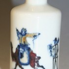 A Chinese underglaze blue and red porcelain bottle, late Qing dynasty, the cylindrical body painted with a Chinese gentleman on a camel between two European figures, height approx 7cm.