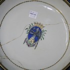 A group of Chinese armorial porcelain, late 18th/early 19th Century, comprising a plate with Swedish Coat of Arms, two octagonal plates painted en grisaille and gilt with crest and banner inscribed 'Hvmaneet Candite', and four saucer dishes, mostly made for the Swedish market (all damaged).