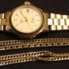 A gold faceted curblink neckchain detailed '585', on a boltring clasp detailed '375', and a Colibri Quartz gilt metal fronted lady's bracelet wristwatch.