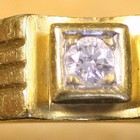 A gold and diamond set single stone ring, mounted with a circular cut diamond in a square shaped setting, between ridged shoulders, detailed '18ct', cased.