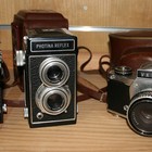 A Yashica-E twin lens reflex camera, detailed 'YE 3120445' a Photavit Photina reflex camera and a Ihagee Exakta VX1000 camera.