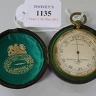 A Negretti & Zambra of London lacquered brass pocket barometer, No. 17886, with leather case.