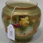A Royal Worcester porcelain ovoid vase, circa 1907, painted by A. Hood, signed, the reserve panels with roses within moulded foliate borders, green printed factory mark to base.