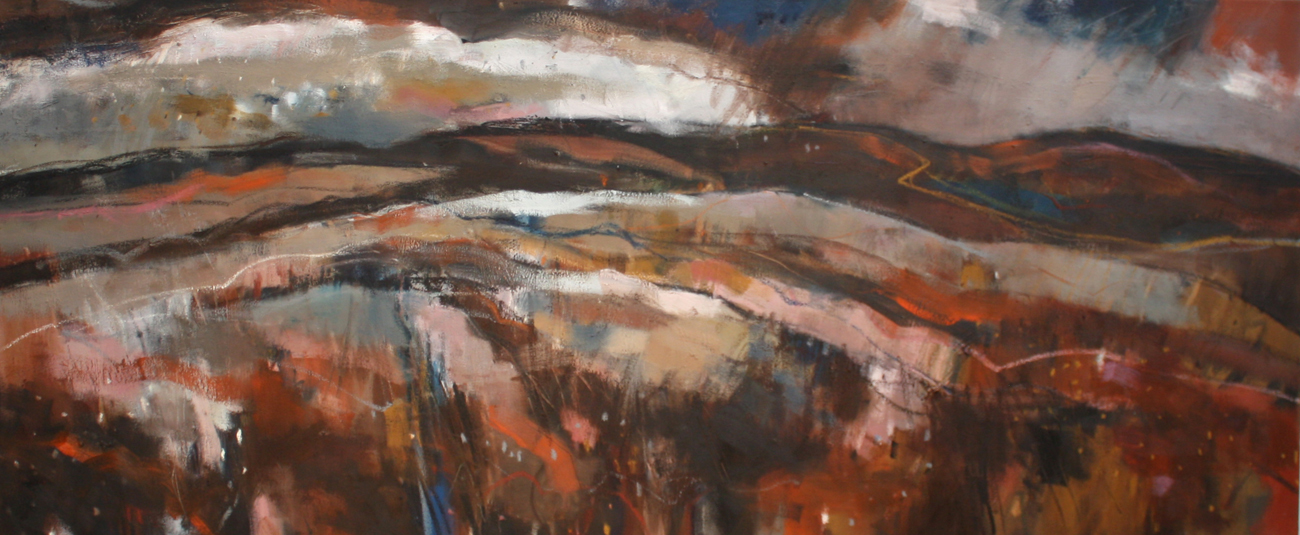Andy Waite - 'Autumn Greys', oil on canvas, signed, titled and dated 2011 verso, approx 80cm x 190cm.
