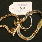 A gold curblink bracelet, on a snap clasp detailed '15', and a two colour gold curblink bracelet, the front panel monogram engraved, on a snap clasp detailed '15'.