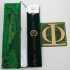 A Baume & Mercier 18ct gold oval cased lady's wristwatch, with a signed plain black dial, on a leather strap, with the original guarantee certificate dated '25.9.76', case and box.