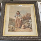 Thomas Uwins - Portrait of a Young Woman beside a Pail and Waterfall, watercolour and gouache, indistinctly signed, approx 38cm x 28cm.