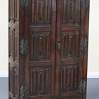 A George V Arts & Crafts style oak cupboard, the moulded pediment above two doors with linenfold decoration, repeated on the sides, raised on stile supports, width approx 114cm.