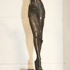 After Demetre Haralamb Chiparus - a modern Art Deco style brown patinated cast bronze figure of a semi-clad female dancer, standing on tiptoes with her arms outstretched, the square base with cast signature 'D.H. Chiparus', raised on a stepped marble plinth, height approx 55cm.