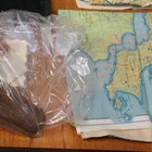 A collection of twelve books and publications, including The Royal Scots 1914-1919, volumes I and II, The London Irish At War and R.A.F. Flying Training Manual Part 1 1931, a silk map of North Africa, a linen map of French Indochina (torn), a copper pistol flask, a Dixon shot measure, a knife, fork and spoon set in leather case, a helmet chin chain, a silk souvenir of Ypres, etc.