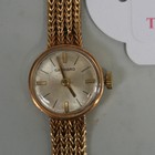 A Garrard 9ct gold lady's bracelet wristwatch, the signed circular silvered dial with baton numerals, on a tapering woven mesh link bracelet with a fold-over clasp, cased.
