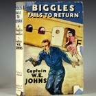 JOHNS, W.E. Biggles Fails to Return. London: Hodder & Stoughton Limited, 1943. First edition, 8vo (185 x 118mm.) Colour frontispiece and occasional uncoloured illustrations by Stead. (Minor spotting.) Original cloth (slightly affected by damp and discoloured), dust-jacket (torn with minor loss). - And forty-two others by Captain W.E. Johns, most featuring Biggles (43).