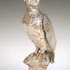 An early 20th Century Continental silver novelty decanter and cover, modelled as a cockatoo with finely detailed plumage, the head forming the detachable cover, the wings hinged to form the handle, on a naturalistic stump base, import mark Chester 1903 by Samuel Boyce Landeck, height approx 28cm.