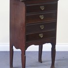 An Edwardian Arts and Crafts style mahogany music chest, fitted with four drawers, on plank supports.