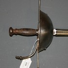 A cup hilted rapier with straight oval section blade, length approx 93.5cm, with short narrow fullers, struck 'AIALA' and 'SIAT', cup indistinctly engraved ''Mu??O AN?? 20' and decorated with radiating foliage (repaired), straight quillions, flattened ball pommel and hardwood grip (lacking binding).