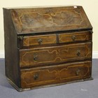 An 18th Century Italian walnut bureau, the fall front above two short and two long drawers, all marquetry inlaid with satinwood strapwork borders, width approx 104cm (faults).