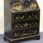 An early 20th Century black chinoiserie bureau, decorated in gilt with figures and buildings, the fall flap above three drawers, on bracket feet, width approx 78cm.