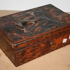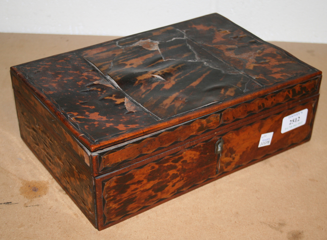 A 19th Century tortoiseshell veneered rectangular box with inlaid borders, width approx 29cm (faults).