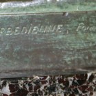 Courbier - an Art Deco green patinated cast bronze figure group of a kneeling nude girl offering a corn cob to a standing kid goat, the rectangular base cast with signature and 'F. Barbedienne Fondeur, Paris', raised on a marble plinth, height approx