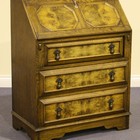 A George V oak bureau inset with walnut panels, the fall flap above three drawers, on bracket feet, width approx 77cm.