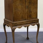 An early 20th Century Queen Anne style walnut cabinet-on-stand, fitted with a pair of crossbanded doors above a shaped apron with slide, on cabriole legs and claw and ball feet, height approx 137cm, width approx 79cm.