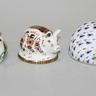 Six Royal Crown Derby Japan pattern paperweights, comprising a ladybird, a lamb, a piglet, a dormouse, a rabbit and a playful kitten, red printed factory marks to bases and each with button (small chip to ear of last).