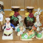 A Lladro gres stoneware figure of a young girl carrying a basket, a Staffordshire porcelain figure of a seated Turk (restored) and a small group of other ceramics, including three Pendelfin rabbits (faults).