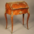 An early 20th Century Louis XV style kingwood and gilt metal mounted bureau de dame of bombé form, the pierced gallery above a fall front revealing three drawers and a well, the shaped apron above tapering cabriole legs, height approx 86cm, width approx 70cm.