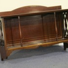 An Edwardian mahogany wall shelf with boxwood line inlaid borders, the arched top above turned spindles and pierced side supports, width approx 72cm.