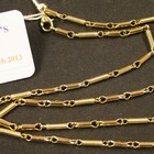 A 9ct gold necklace in a plain tubular and ridged tubular link design, on a sprung hook shaped clasp.