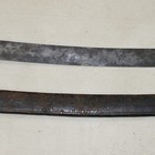 A Continental artillery sidearm with curved single edged blade, length approx 56.5cm (pitted), cast brass hilt with knucklebow and banded grip, in its brass mounted leather scabbard.