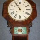 A late 19th Century American rosewood cased octagonal drop dial wall clock with eight day movement striking on a gong, the painted dial with Roman numerals, the apron with glazed lenticle, applied 'Westbury Clock Company' paper label to interior, approx 64cm, together with pendulum.