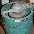 A White Mountain Freezer ice cream maker, two wooden storage containers, a washing dolly and a sieve.