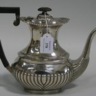 An Edwardian silver hot water pot, of oval half reeded form, Birmingham 1906 by F.B & Co, height approx 22cm.