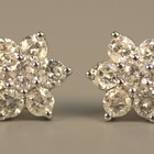 A pair of white gold and diamond set seven stone cluster earstuds, mounted with circular cut diamonds, the backs with post and butterfly clip fittings.