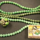 Three single row necklaces of spherical green stone beads, including aventurine, a Buddha pendant, two pendants, a neckchain and a pair of Oriental aventurine earrings.