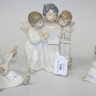 A Lladro porcelain figure group of three angels, model No. 4542, and two other Lladro porcelain figures of angels.